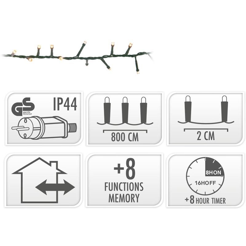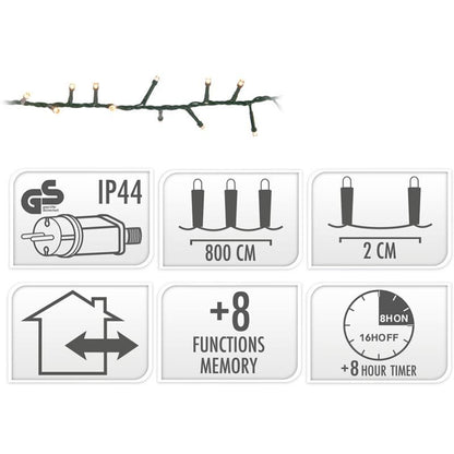 Microcluster - 400 Led - 8M - Warm Wit - Timer - Lichtfuncties - Geheugen - Buiten
