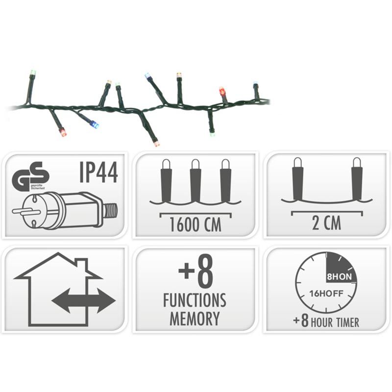 Microcluster - 800 Led - 16M - Multicolor - Timer - Lichtfuncties - Geheugen - Buiten